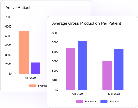 Get the insights you need with reports generated regularly to monitor KPIs, review progress toward goals, and drive accountability across your practices.